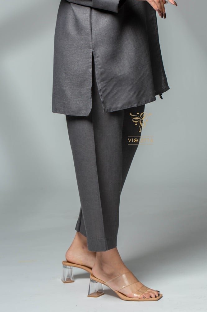 • لون البدلة رمادي محايد لذلك سوف يليق على جميع ألوان البشرة.