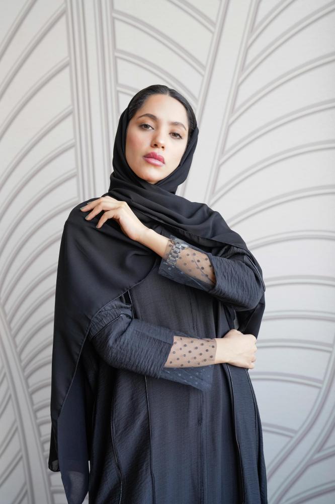 - A distinctive tulle abaya that suits daytime looks.