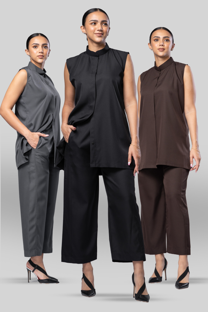 بكج مكون من ثلاث أطقم بألوان حيادية تتماشى مع كل تنسيقاتك، مناسب للعمل والطلعات اليومية.