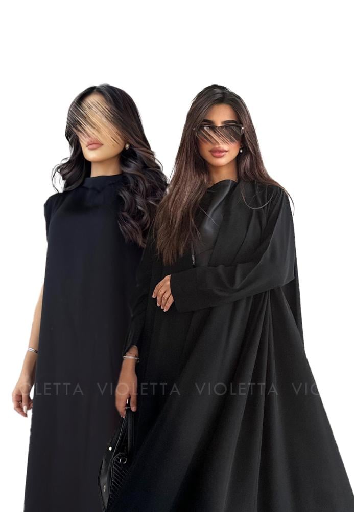 بكج عباية سوداء تربل كلوش كويتي بقماش الليزر و فستان تحت العباية- 6194